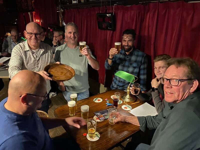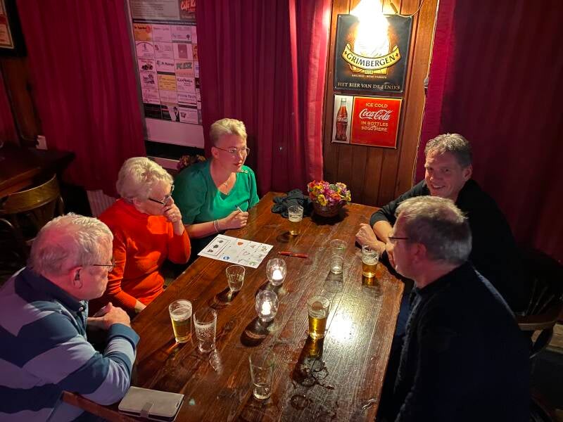 Op vrijdag 5 januari was het weer tijd voor de jaarlijkse nieuwjaarsborrel/jaarvergadering. In café Kajuiter aan de Haspel in Zevenhuizen was het op deze avond met een dikke 50 bikers, sponsoren en vrijwilligers van de stichting ATB Zevenhuizen gezellig druk. Iedereen werd welkom geheten met een kop koffie en een overheerlijke appelflap aangeboden door bakkerij van Esch. Na een welkomstwoord van onze voorzitter Roelof was de microfoon voor onze spreekstalmeester Bert. Aan de hand van een fraaie Powerpoint presentatie werd er door Bert, met de nodige humor, teruggeblikt op het afgelopen MTB jaar. Daarna was het tijd voor wat toch wel het jaarlijkse hoogtepunt van de nieuwjaarsborrel genoemd mag worden, de bekendmaking van de vrijwilliger van het jaar. Deze eer ging dit jaar naar Dick Louters. Dick maakt al jaren deel uit van het vrijwilligerskorps van onze stichting. Je hoeft Dick maar te vragen en hij staat klaar om te helpen bij onze tochten. Ook het verbouwen van onze opslagcontainer was aan Dick wel besteed. Dick, nogmaals gefeliciteerd! Nadat de activiteitenkalender voor het nieuwe jaar was doorgenomen, werd er met elkaar een leuke pubquiz gespeeld. De organisatie/presentatie van deze pubquiz was, samen met hun persoonlijke assistentes Nynke en Esther, weer in vertrouwde handen bij Martijn en Bert. Daarna volgde nog de nazit die voor sommigen tot in de late uurtjes duurde. We kijken terug op een geslaagde nieuwjaarsborrel! Kijk hieronder voor een aantal foto's van deze gezellige avond.
